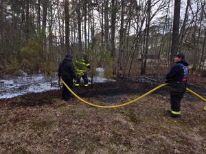 On March 9th, in the late afternoon, Station 30 was called out to a brush fire on Burswell Bay road. Chief 30, Brush 30, Engine 32 and Tanker 30 arrived at the location. Fortunately there wasn’t a threat to a structure upon arrival. The Rushmere Volunteers quickly contained and extinguished the fire. Engine 32 and Brush 30 did the attack on the fire. Foam was sprayed on the burnt ground to ensure the fire would not come back.